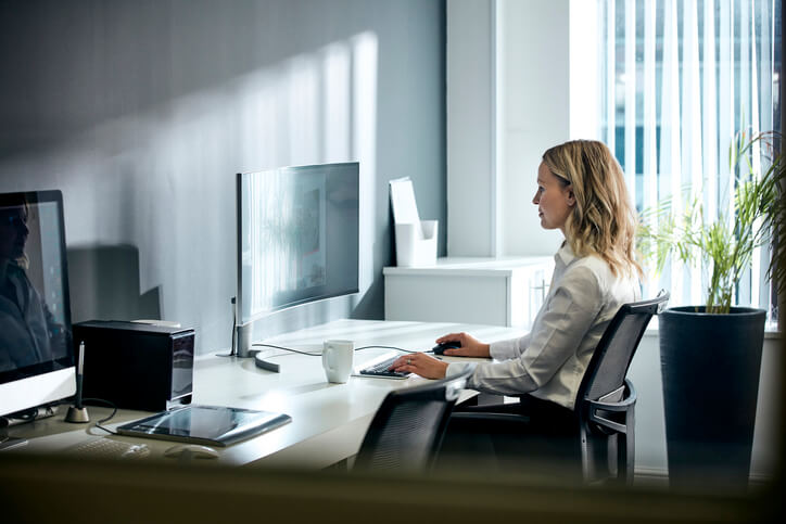 Varva mellan att stå och sitta när du arbetar. Det absolut bästa tipset för en bra arbetsposition är att man varierar sin position under dagen. På så sätt får du igång kroppens blodcirkulation.